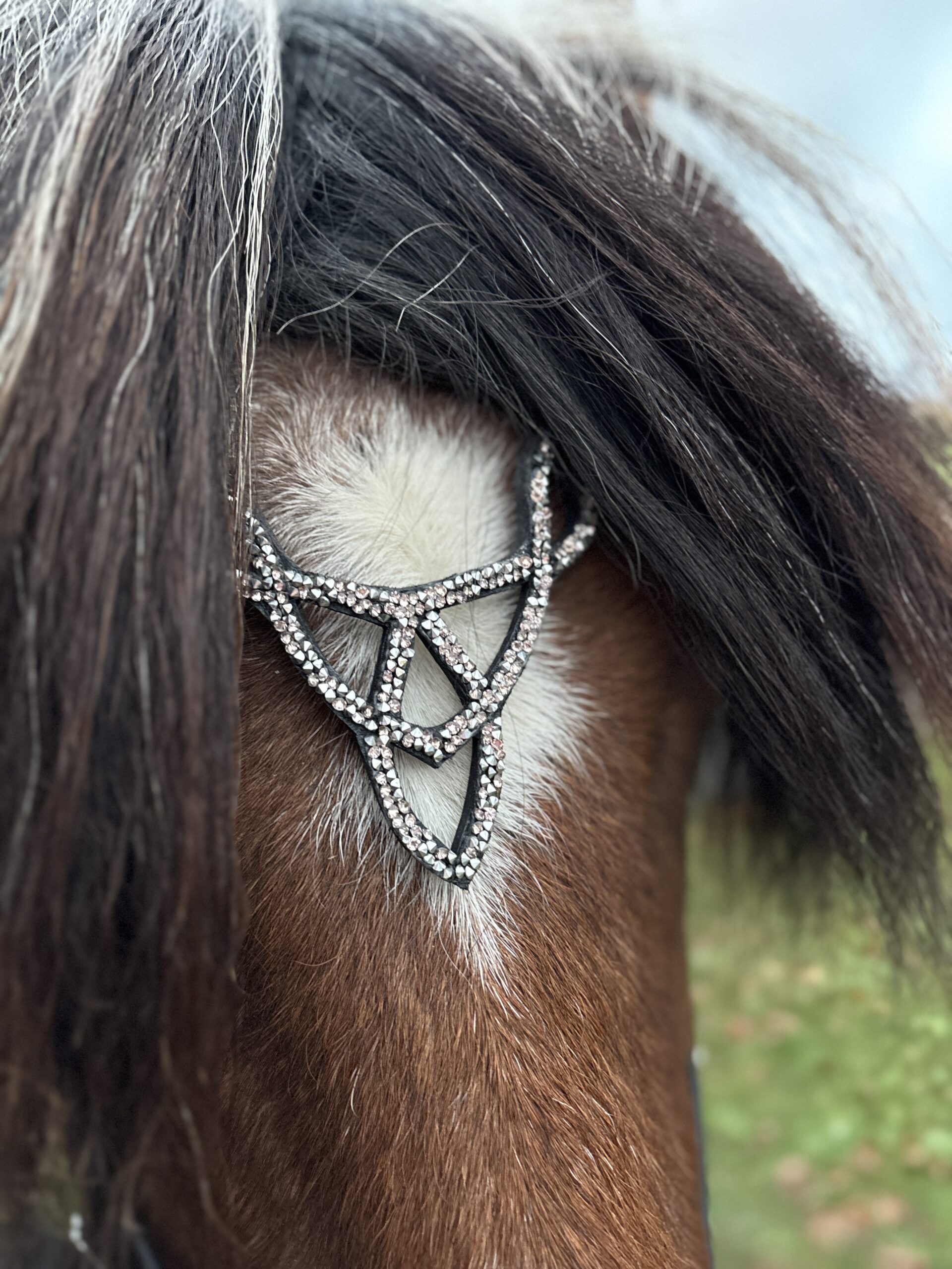 Das Lukka Genickstück mit Stirnriemen von Hestagallery verbindet zeitloses Design mit einer modernen, stilvollen Farbnote. Gefertigt aus schwarzem Leder und ergänzt durch elegante roséfarbene Details, verleiht dieses Modell jeder Trense eine besondere Ausstrahlung.
